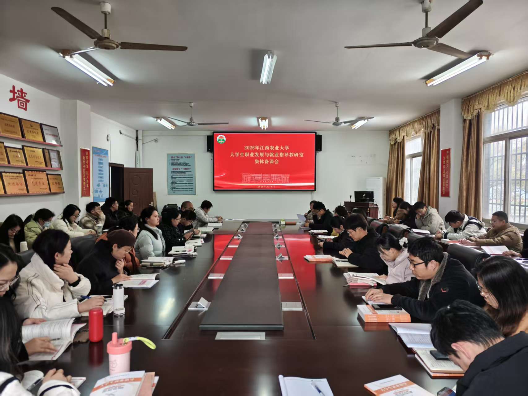 为扎实推进《大学生职业发展与就业指导Ⅱ》课程建设,大学生职业发展与就业指导教研室于2026年3月5日下午在大学生活动中心211室召开新学期集体备课会。招生就业处负责人及教研室全体授课教师参会,会议由教研室主任李莉萍主持。