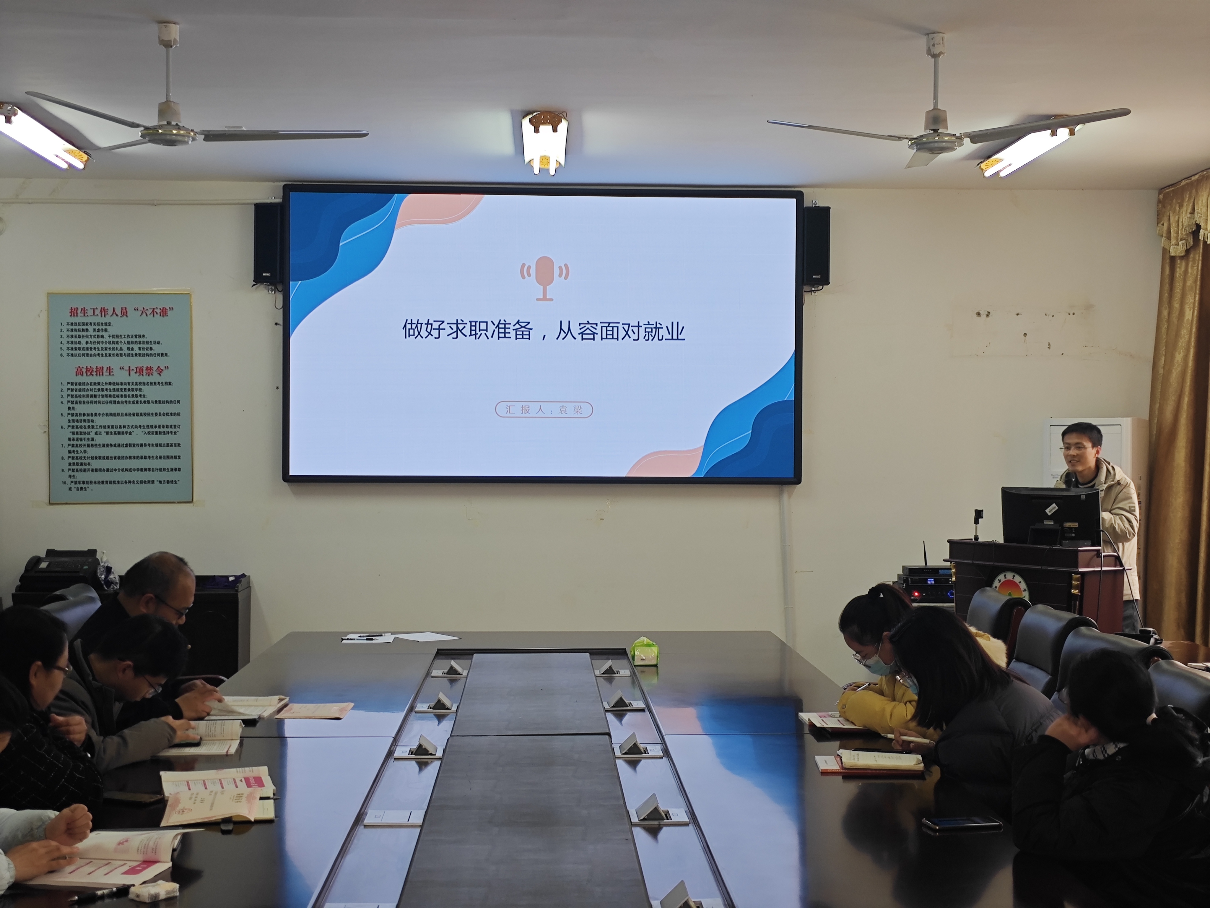 最后,会议明确了本学期课程教学的规范与要求。会议强调,全体授课教师必须严守教学纪律,密切关注课表,准时上下课;应牢牢把握课堂意识形态主导权,确保教学内容正面积极。同时,所有教学活动须严格遵循课程教学大纲,保障教学体系的规范性与教学目标的达成。会议统一了思想认识,明确了工作重点,为进一步夯实我校就业育人工作基础、打造具有影响力的课程品牌起到了积极的推动作用。